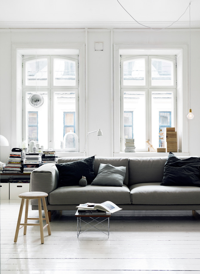 I just found these amazing photos of the apartment of Emma Persson Lagerberg from Petra Bindel whose work I admire so much. This apartment with it's white floors and lovely colour palatte with grey, green, white and beige is so inviting that I could move in rightaway! What about you?